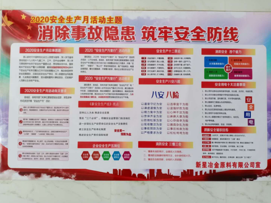 為響應國家安全生產月活動,根據鋼興集團公司《關于開展2020年“安全生產月“活動的通知》要求,新星公司緊緊圍繞“消除事故隱患、筑牢安全防線”的活動主題。結合新星公司安全工作實際情況,以加強安全意識,提高安全素質為著力點,深入開展安全月各項措施,安環部利用宣傳橫幅、張貼安全標語、標志標牌、LED電子顯示屏滾動播放相關安全知識和標語口號、網絡學習“血的教訓”事故案例等多種形式廣泛宣傳。